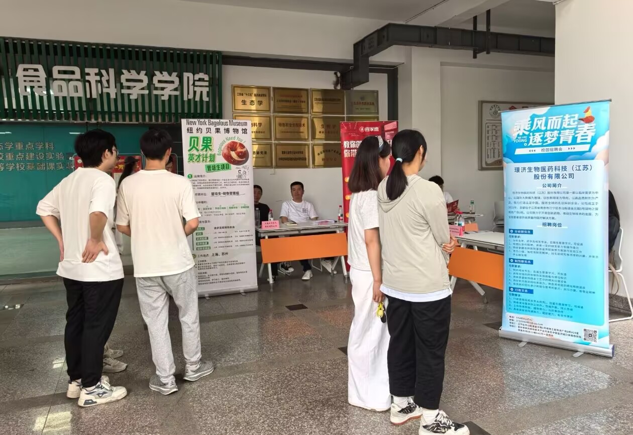 学院高度重视就业工作,提前谋划、精心组织,邀请璟济生物医药科技(江苏)股份有限公司、南京凯创生物技术有限公司、上海优贝拾光餐饮有限公司等近50家知名企业进校招聘,提供涵盖食品研发、质量检测、医药健康、生产管理、市场营销等领域的就业岗位。现场求职氛围浓厚,也吸引了部分非毕业年级学生参与,提前了解行业动态,积累求职经验。