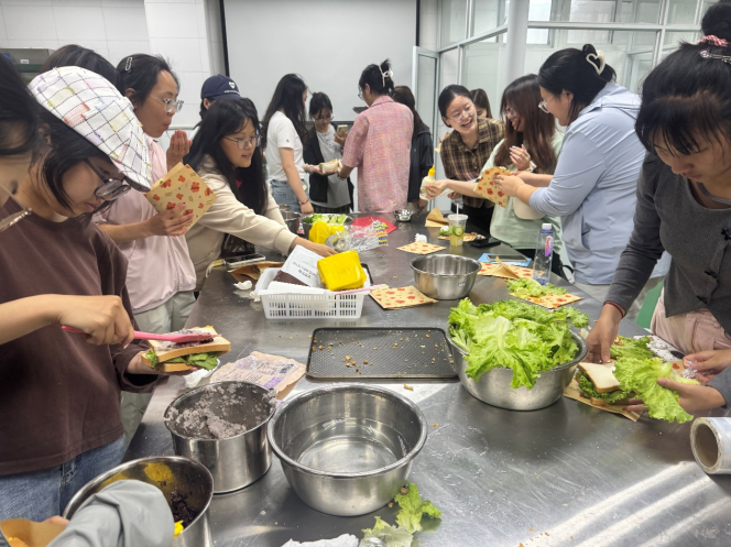 为积极倡导健康饮食理念,切实提升学生的营养知识水平与实践操作能力,近日,新葡萄8883官网AMG “食光筑梦·匠心育才”赋能营第三期活动在学院“一站式”学生社区成功举办。本次活动由学院专业社团烘焙时光承办,通过巧手制作健康低卡三明治,引领校园营养新风尚,活动吸引了各个学院的同学热情参与。