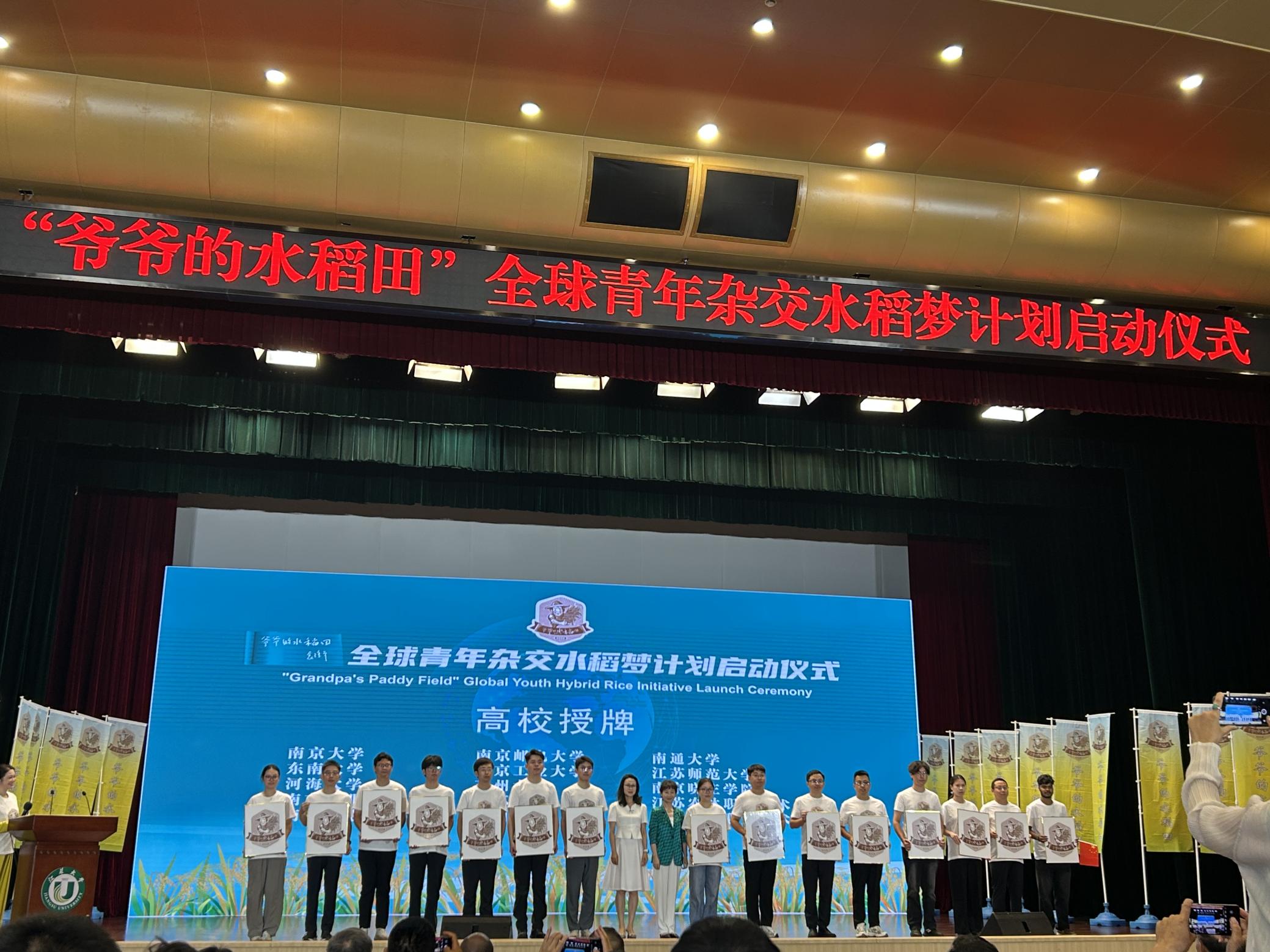 8月13日,由联合国粮农组织驻华代表处、中国水稻研究所、中国作物学会特用作物专业委员会、湖南省袁隆平农业科技奖励基金会主办的“爷爷的水稻田”全球青年杂交水稻梦计划启动仪式在江苏大学举行,新葡萄8883官网AMG师生代表受邀参加活动并作为合作单位接受主办方授牌。