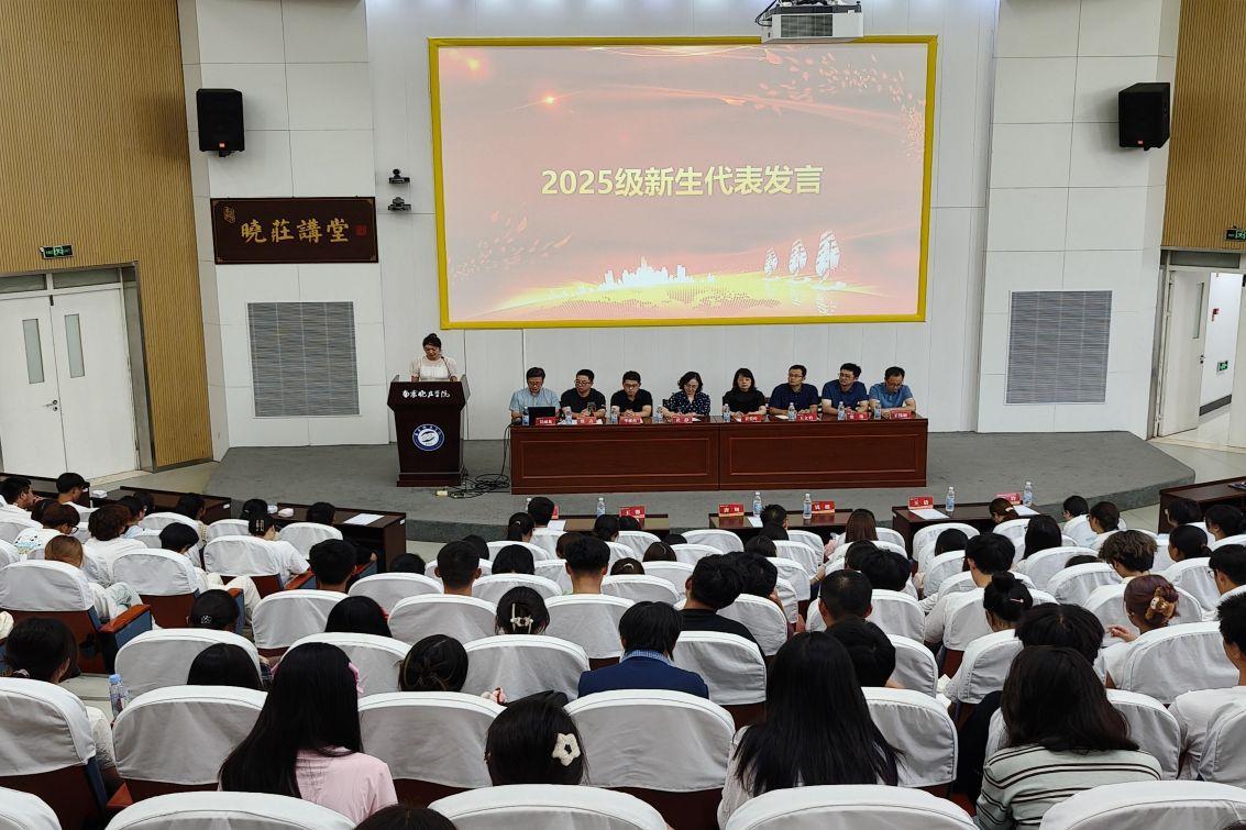 2025级新生代表马可欣同学满怀激情地表达了对大学生活的美好憧憬,也坚定地许下承诺,将以积极乐观的态度迎接大学生活中的挑战,不负时代赋予的使命,不负青春韶华,努力成为有理想、有本领、有担当的新时代青年。