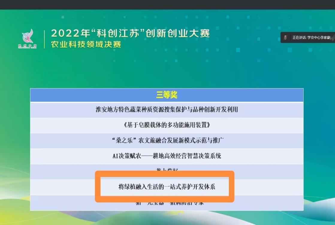 图1 2022年“科创江苏”创新创业大赛农业科技领域决赛获奖名单