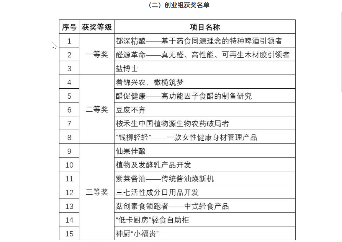 图2 2022年“科创江苏”创新创业大赛食品科学领域决赛获奖名单