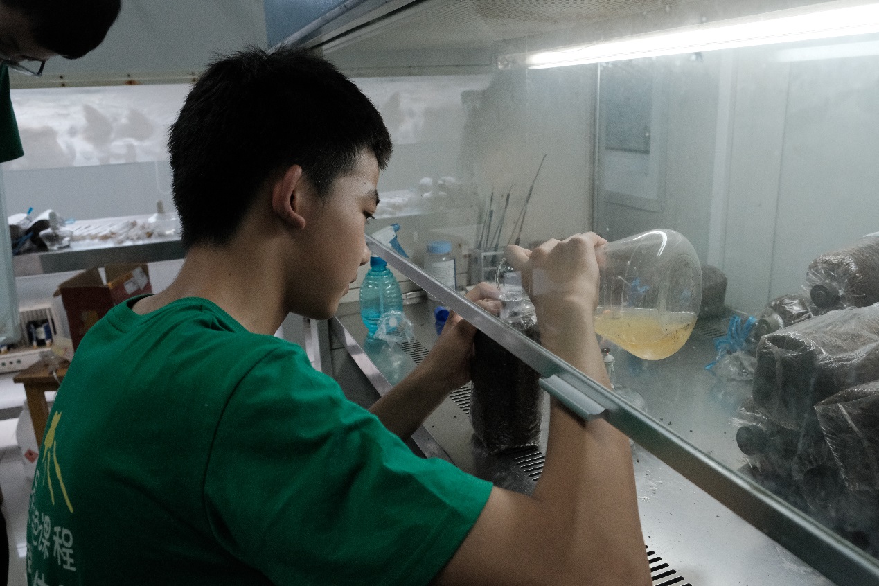 同学们首先走进“蘑菇的神秘世界”,参观食用菌栽培室、科普相关食用菌知识,了解多彩的食用菌世界,激发同学们探索菌物世界奥秘的兴趣;亲身体验了制作培养袋、栽培菌株的过程,实现与“菌菇共成长”,体验科学探索的魅力;亲手制作菌菇食品、感受舌尖上的美味,理解“一荤一素一菇”健康理念,体会莫愁前路无知己,天下谁人不食“菌”的豪情。