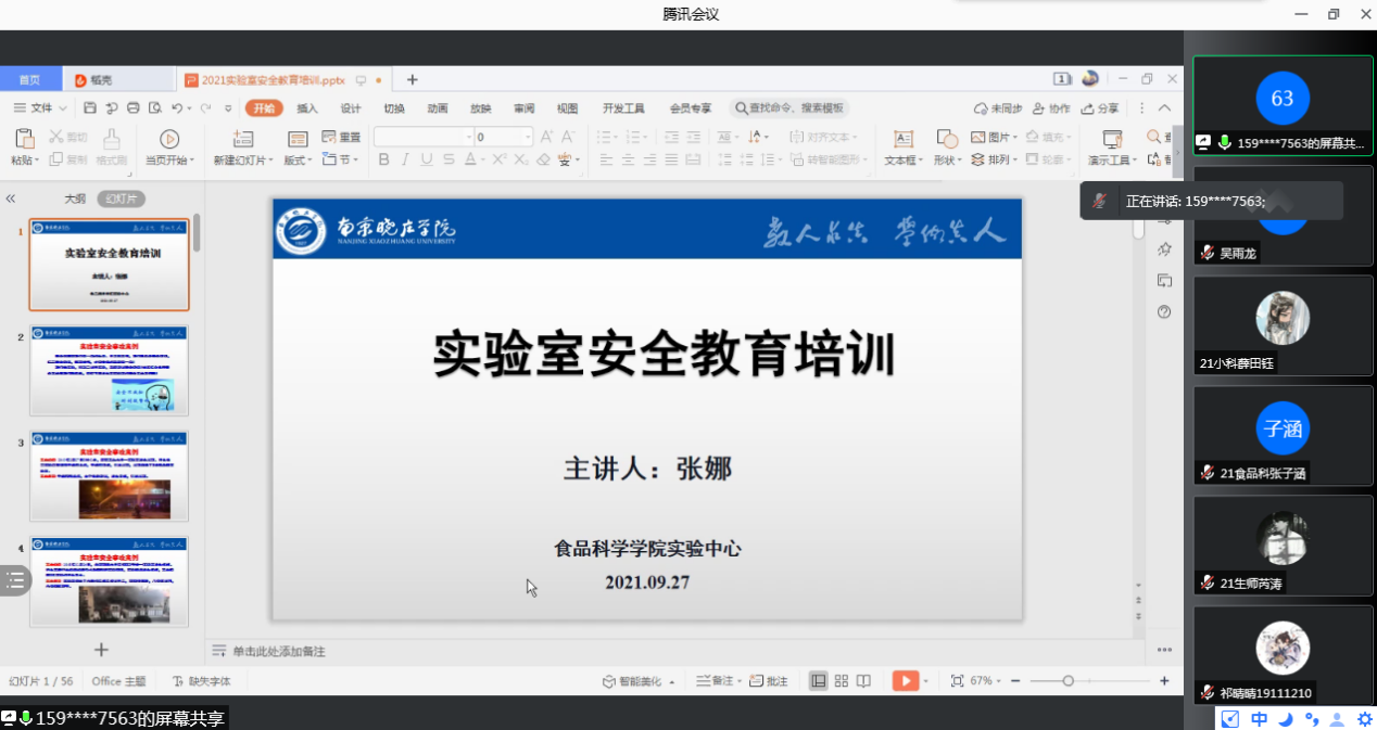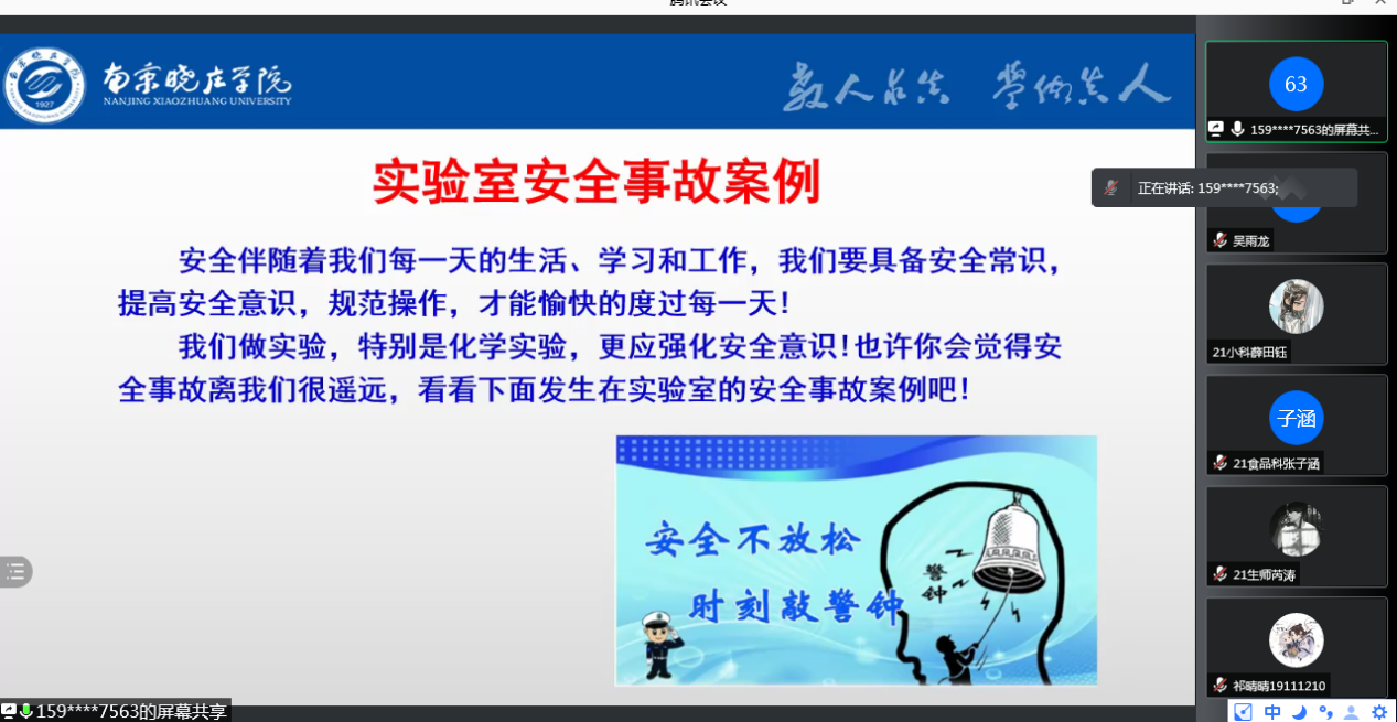 为落实江苏省教育厅和南京市教育局有关实验室安全管理的要求,进一步提升我院实验室安全管理水平,提高新生实验室安全意识,预防和遏制实验室事故发生。 9月27日下午,新葡萄8883官网AMG实验中心通过线上教学平台,组织开展了21级新生实验室安全知识培训会,由学院实验中心副主任张娜老师作了《做好实验室安全管理,防范实验室安全事故》的培训。