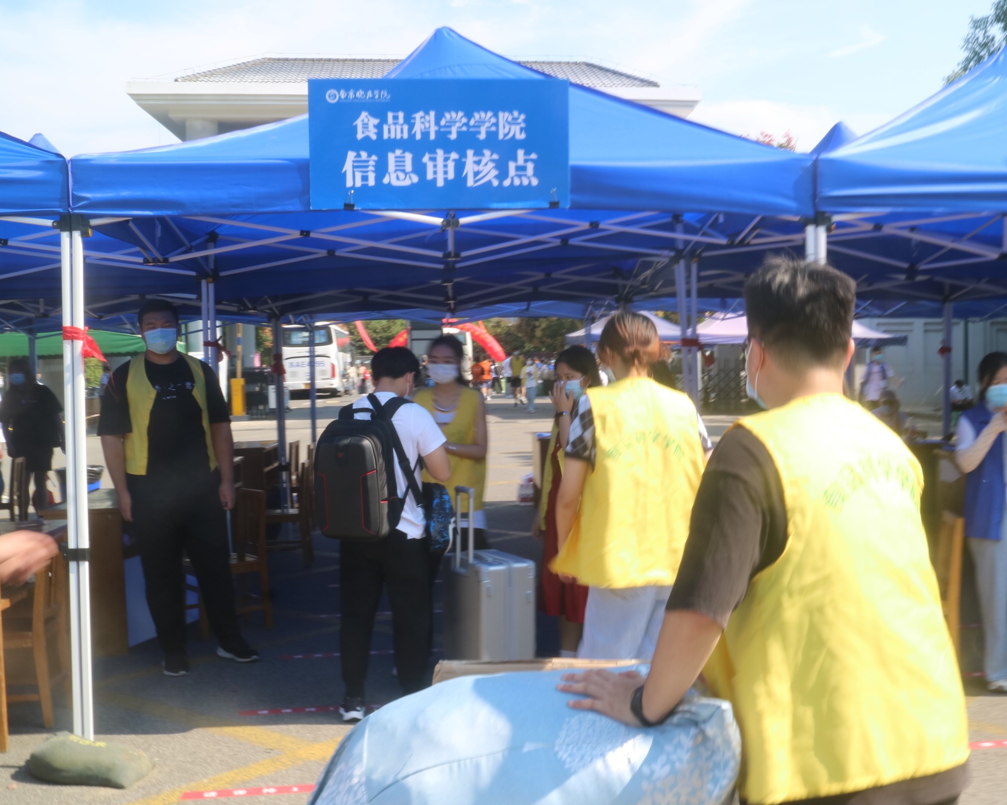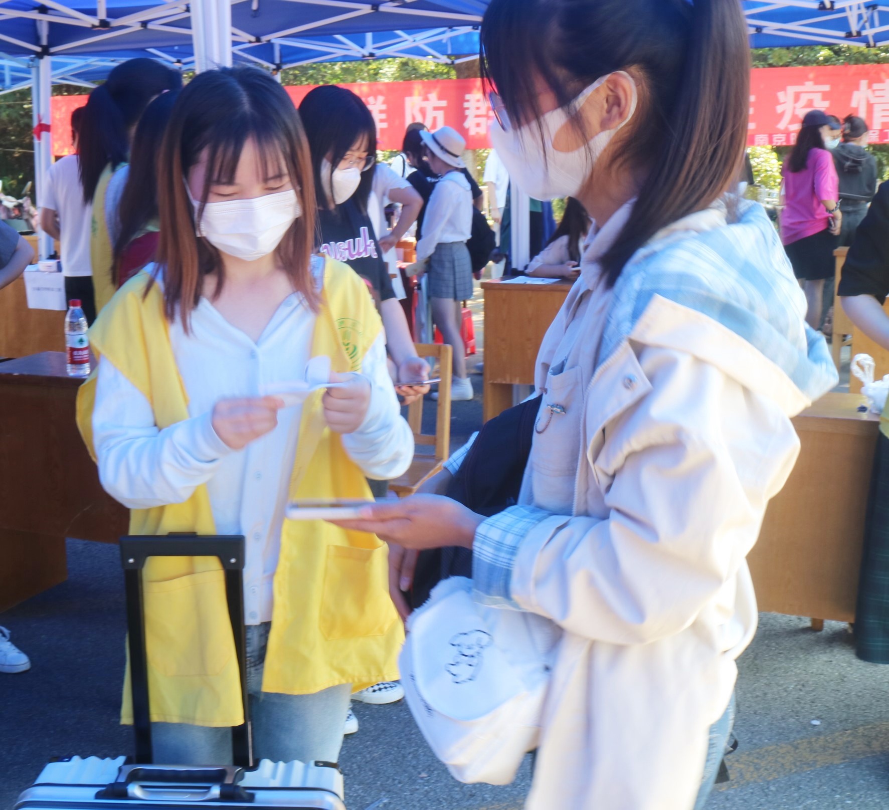 由“新生辅导员老师、新生小班、党员积极分子、学生志愿者”组成的迎新队伍,以“接力赛”形式助力新生顺利报到。新生辅导员老师全程在岗、在场、在线,统筹工作部署,协调人员安排,处理应急事宜。全体班导师助理于早晨6点30集合完毕,在学院报到点整装待发,等待新生到来,指引快速了解报到流程,耐心解答疑问。学生志愿者们,在学校大门口帮助查验信息,协助搬运行李,指引核酸检测,让新生充分感受到我院团结互助的和谐氛围。“一对一”党员积极分子,提前到场等候,在新生做完核酸检测后,“点对点”引导其到学院报到点办理报到手续,期间详细为新生介绍食堂、澡堂、图书馆等与生活学习的相关重要地点,帮助迅速融入大学生活。对稍晚到校的同学,学院与其保持联系,细心指导,耐心等待新生进校,直到接到最后一名新生,一直送至宿舍安顿。从天明到日暮,迎新圆满结束。