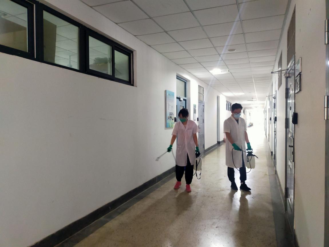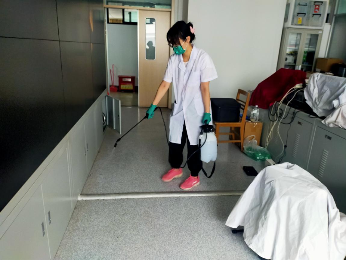 由于假期实验中心大楼有不少施工队在进行施工,因此在消杀过程中,我院实验中心教师对我院实验中心所属的楼梯走廊、办公室、实验室等区域进行了全面消毒作业,不留死角、不留盲区,为全院师生构筑安全屏障。