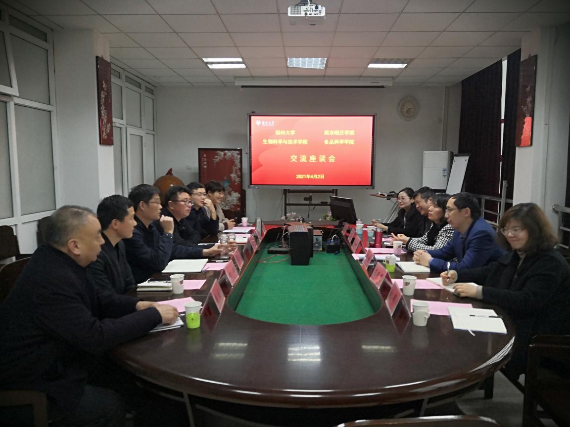 交流会上,扬州大学生物科学与技术学院副院长熊飞教授全面介绍了学院情况,并对学院的学科建设、专业建设、学院的“十四五”发展规划等方面的工作思路和战略举措进行了详细解读;生物科学系陈刚主任就生物科学人才培养方案、师范专业认证的准备等方面进行了经验分享。座谈中,双方还就人才培养、课程建设等方面进行了深入的探讨。通过此次调研,我校新葡萄8883官网AMG在学科与专业建设、专业硕士学位点申报等方面进一步厘清了思路、学习借鉴相关经验做法,这为学院精准施策,不断提高人才培养质量,提供了切实可行的办法和举措。
