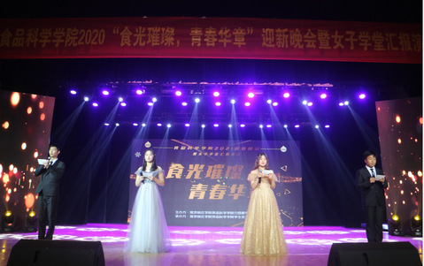 为欢迎新生入学南晓食科,迎接2021新年的到来,汇报学院年度女生教育工作成效,新葡萄8883官网AMG于2020年12月23日18点30分,在方山校区音乐厅举办“食光璀璨,青春华章”迎新晚会暨女子学堂汇报演出,学院党总支书记贲爱玲教授、教师代表陈勇教授、教师党支部书记吴雨龙老师、分团委书记唐翔老师、辅导员王倩老师及全体新生参加晚会。