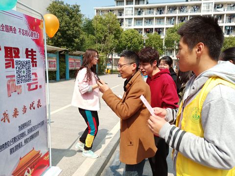 3月13日,我院学生走进淳化小学,开展“两会进校园”宣讲活动,通过现场讲解和小游戏的形式向小朋友们宣传两会,普及两会知识。3月14日,学院在校园内开展“我来当代表”和“两会知多少”活动。“我来当代表”运用新媒体平台,引导师生参与两会热点话题讨论,为国家发展建言献策。活动还设置有奖竞猜环节,有趣的答题方式拉近了师生和两会的距离,掀起活动的高潮。我院“微爱”志愿服务团队还在食堂、道路等地向过往师生发放两会宣传材料,让更多人了解两会常识,学习两会精神。