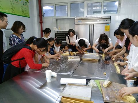 6月2日上午,小朋友们一起来到了食品科学学院焙烤实验室,在学院焙烤协会李雅清等同学的指导下,小朋友们开始和面,加黄油,加糖,揉面,做各种造型的曲奇,忙的不亦乐乎。