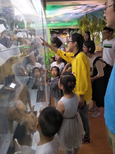 在曲奇焙烤等待的过程中,我们带领小朋友们参观了学院的标本馆。标本馆的讲解员崔力洋等同学耐心、仔细的给小朋友们讲解了各种各样的动植物标本,小朋友们瞪大了眼睛好奇的听着,不时的提出各种问题。参观完标本馆,小朋友们一起回到焙烤室享用了自己亲手做的曲奇。