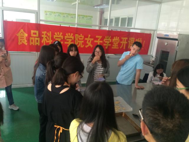 5月9日,新葡萄8883官网AMG“快乐烘焙、健康生活”女子学堂第一课在我院烘培实验室104 正式开课。