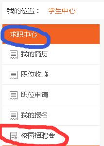 2、登录成功后,页面左上角,点击“求职中心”中“校园招聘会”