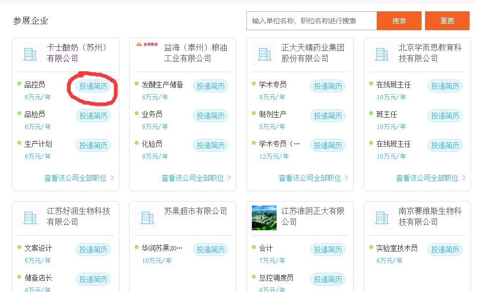 4、在新跳入的页面,下拉即可看到招聘企业,并可在线投递简历