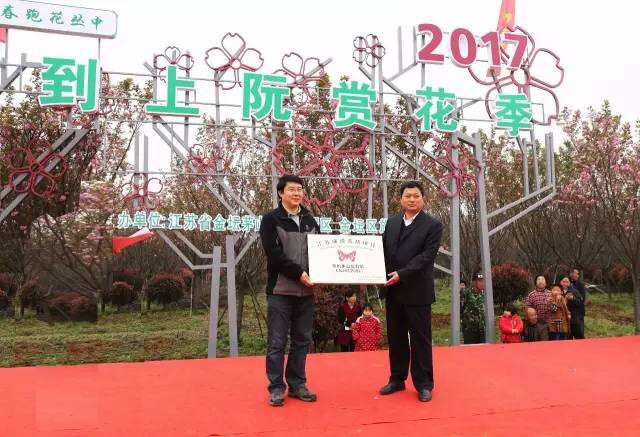 经过数月的筹备,4月8日,借“2017春到上阮赏花活动”的契机,我院应用生态研究所在上阮现代农业产业园的千亩樱花园完成了江苏省蝴蝶监测项目挂牌仪式,仪式上我院应用生态研究所所长李朝晖教授为茅山风景区代表江苏省金坛茅山旅游度假区管委会副主任王益民先生颁发监测点标识牌。