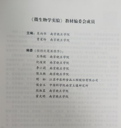 《微生物学实验》教材的出版是南京晓庄学院新葡萄8883官网AMG作为第一主编单位的重要成果,也是生物科学专业师范认证和一流专业建设点结项验收的重要考核指标。该教材结合课程思政要求和OBE理念,将德智体美劳全面发展的要求贯穿于内容选材、体系编排、呈现方式等各环节,注重体现素质教育的创新能力与实践能力的培养。