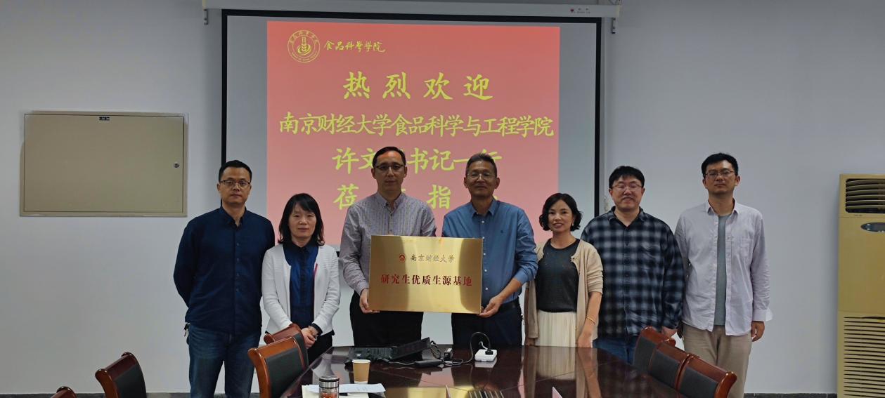 10月10日下午,南京财经大学食品科学与工程学院党委书记许文彪、院长助理李向菲等一行到我院开展学科专业建设交流,并举行南京财经大学“研究生优质生源基地”揭牌仪式。学院党委书记周峰、院长贲爱玲、副院长王立科、专业负责人张伟等参会,会议由院长贲爱玲主持。