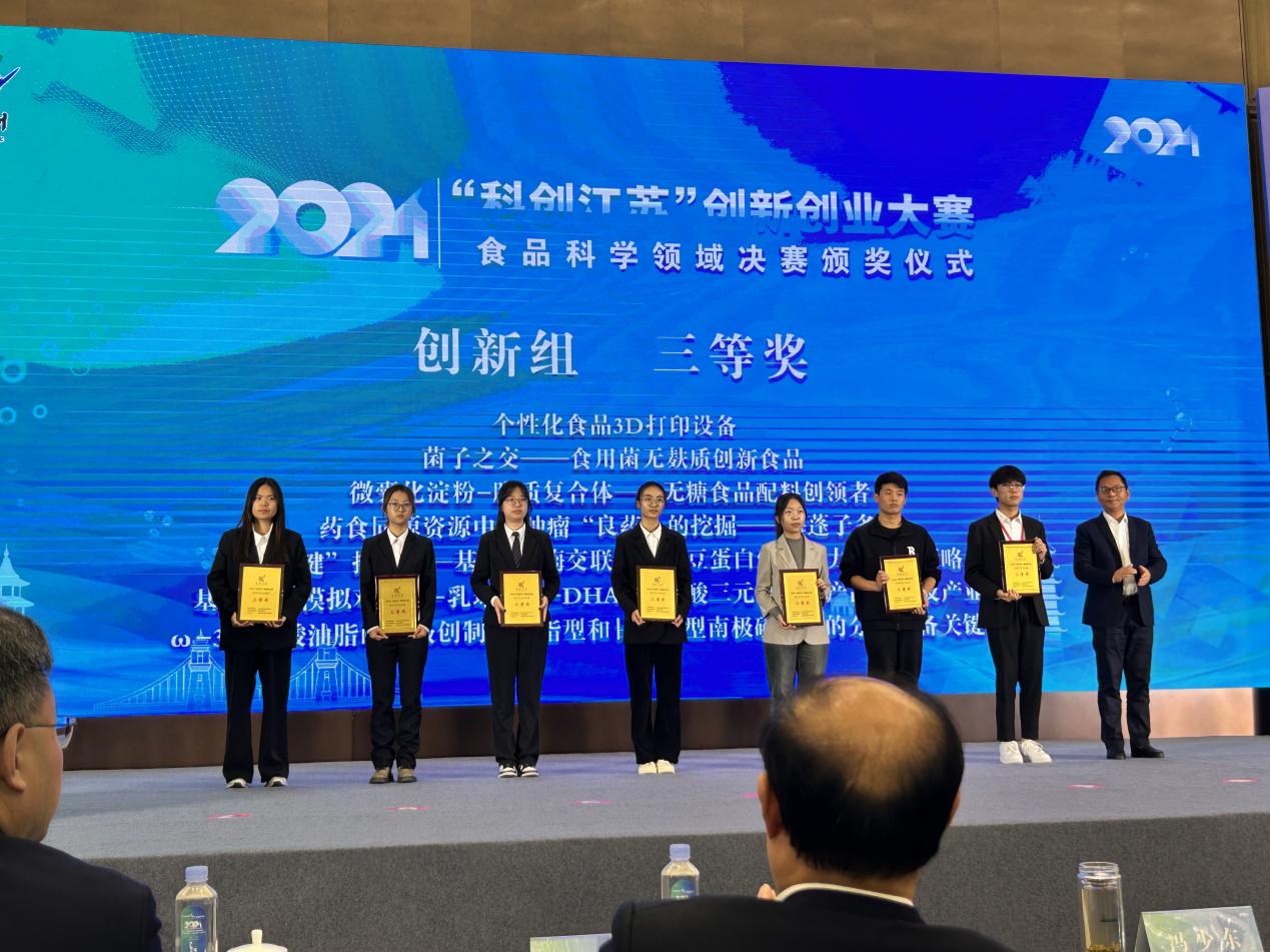 2024年“科创江苏”创新创业大赛食品科学领域决赛中,夏天兰和王蓉蓉老师指导唐嘉昱、李倩、殷一舟、任雪、韦璇璇和万雪倩同学,凭借《菌子之交—食用菌无麸质创新食品》项目荣获创新组三等奖,体现了师生在创新创业方面的积极探索和实践精神。这些成绩的取得,是学院师生共同努力的结果,将激励更多师生在各自的专业领域不断进取,创造更多的实践成绩。